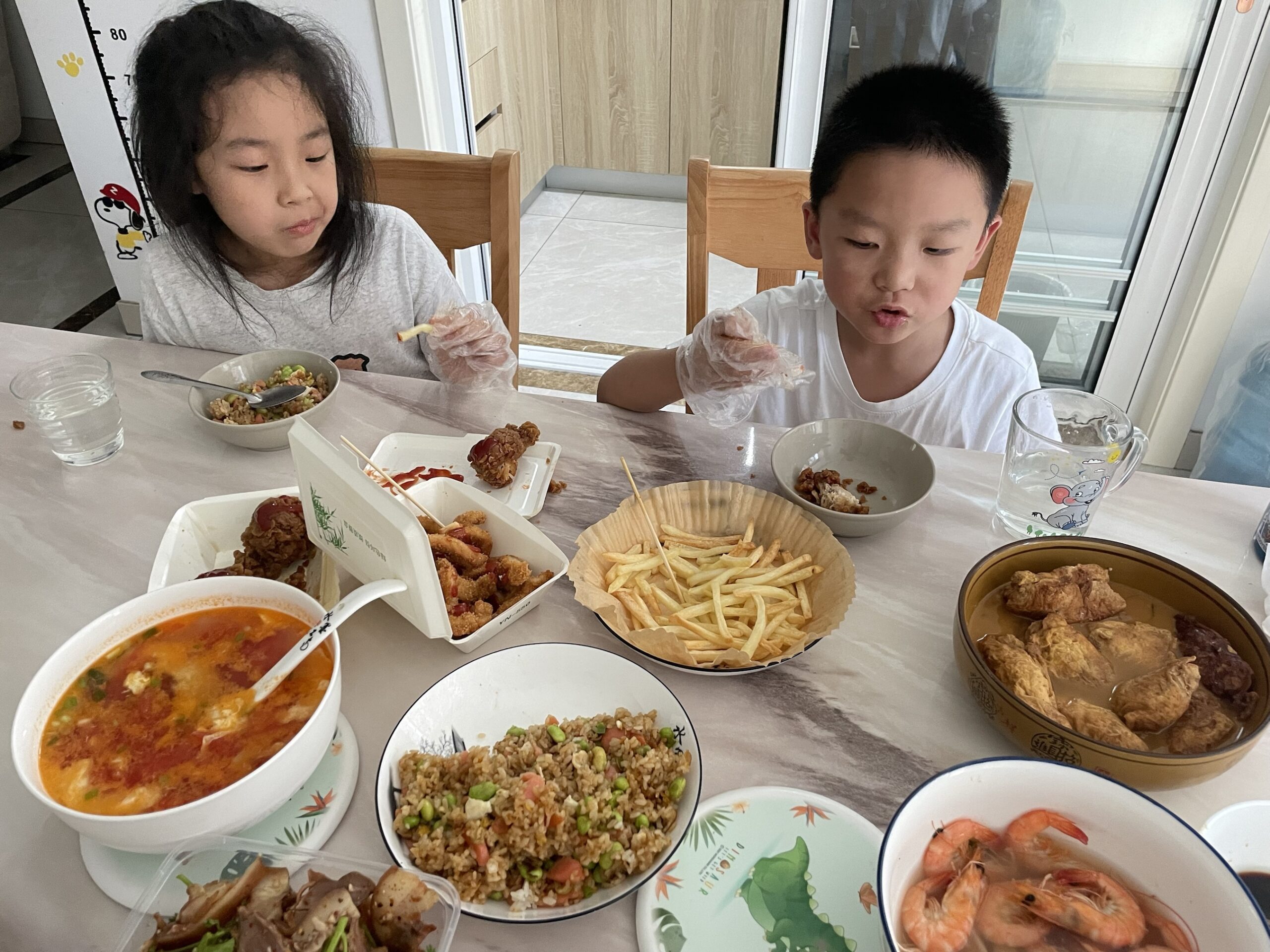 风卷残云的画面完全不像刚生过病的小孩。