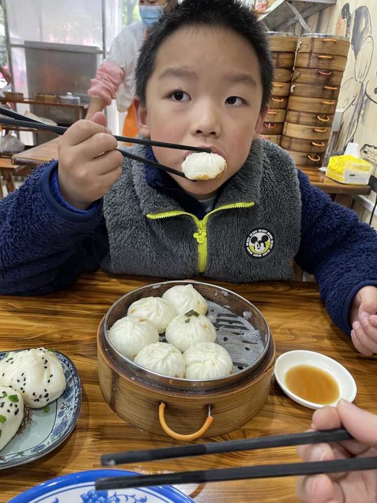 周末吃早点成了保留节目,上完围棋课已经九点多,骑车跑了三公里来到这家生煎店,一笼小笼包,三个生煎,一人吃了一半。周日本来还想去,无奈起的晚,只能作吧。