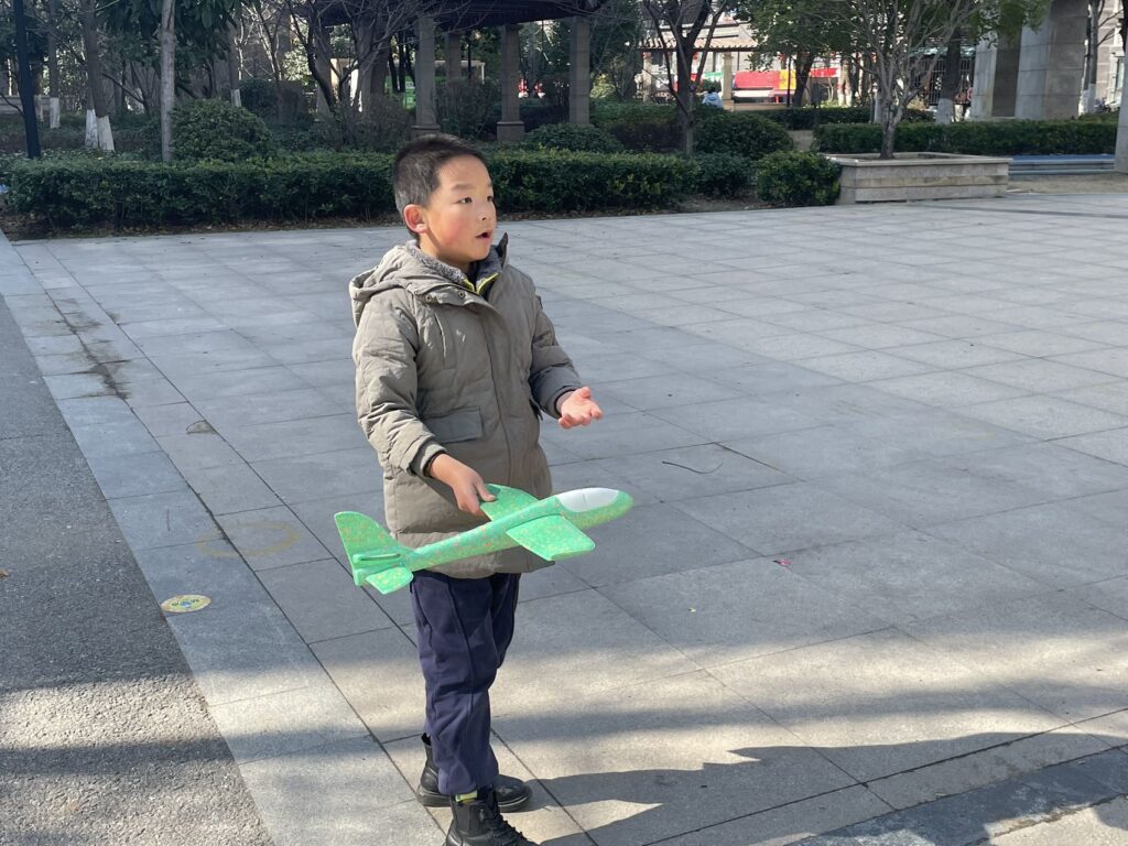 天气很好,下楼的间隙带了个飞机,正在给我讲解飞行要点,并演示。