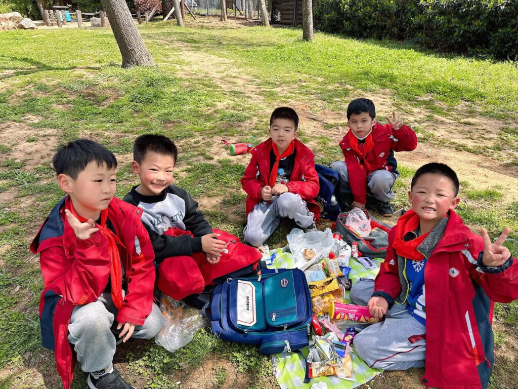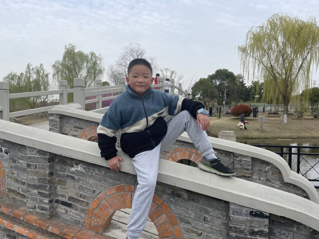 学校组织的春游,今天无锡最高气温 21 度,小家伙热的不轻。