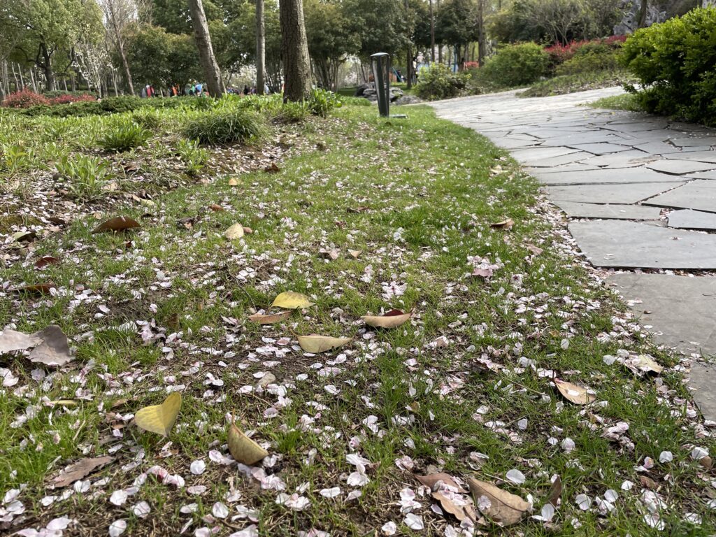 花今年比较惨,上周刚开了一点,被一周的雨打落满地,下周基本上看不了了。